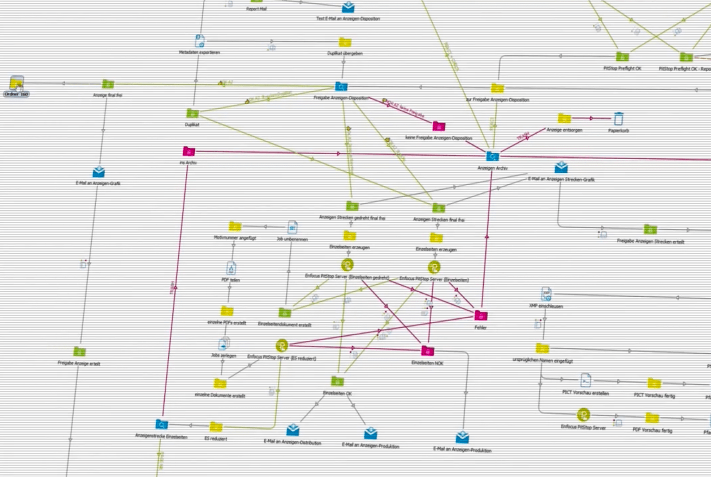 Effiziente und strukturierte Workflows sind entscheidend für den Projekterfolg. Entwicklung und Implementierung maßgeschneiderter Workflow-Lösungen erfolgen durch den Einsatz von Softwarelösungen wie z.B. Enfocus Switch. Diese Automatisierung und präzise Steuerung optimieren Produktionsprozesse, minimieren Fehler und maximieren die Effizienz. So werden Zeit und Ressourcen gespart, während gleichzeitig ein reibungsloser Projektablauf gewährleistet wird.